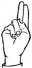 На ћирилици написано ЉУБИСЛАВ ВУКШЕВИЋ састоји се из 16 слова [?]. Исписано ћириличном једноручном азбуком за глувонеме: